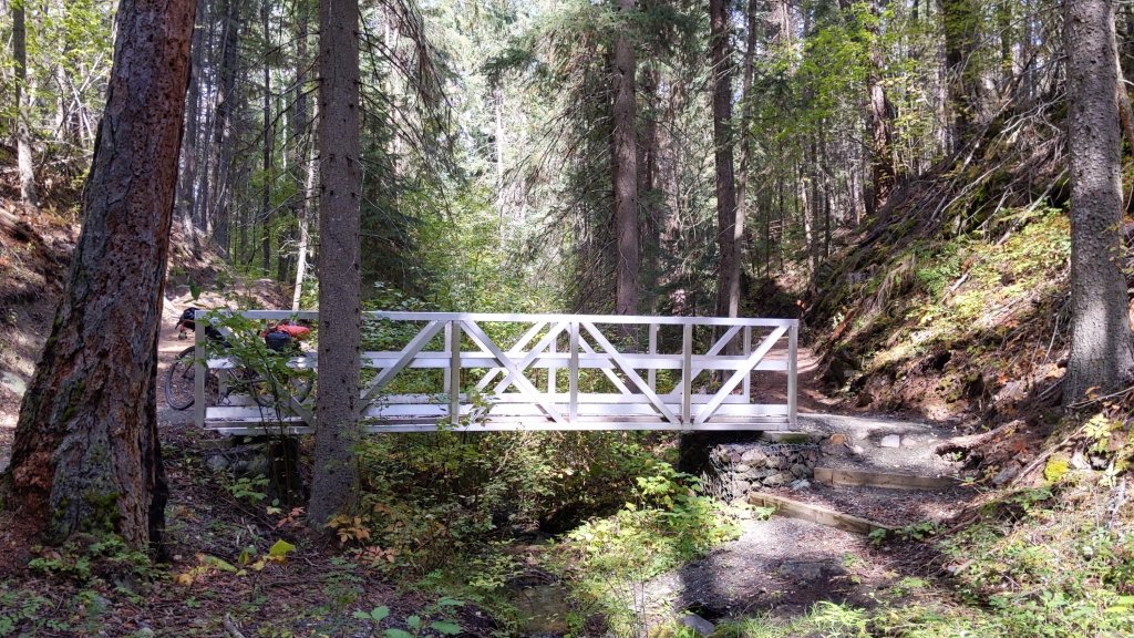 The fuel was needed as I left the fast highway for the trail….but what a trail; gently rising switchbacks on smooth crushed gravel, made for all those bikes that are not really mountain bikes. It was 40 km of cycling bliss.