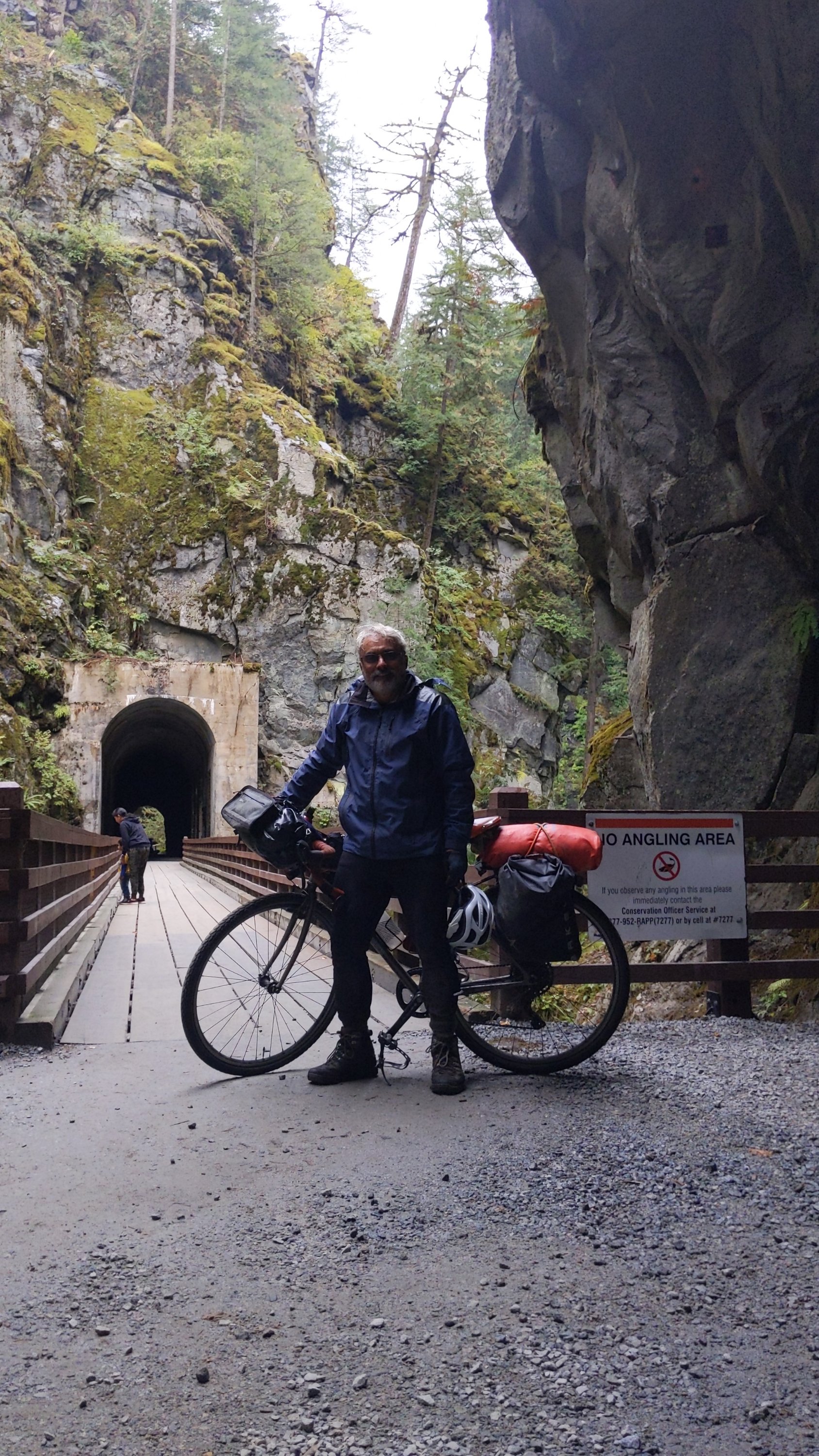 Gentle climb to the Coquihalla Pass and then the long descent from alpine conditions to the slightly warmer Coquihalla Canyon, the Kettle Valley Railtrail, and the incredible Othello Tunnels just before Hope.