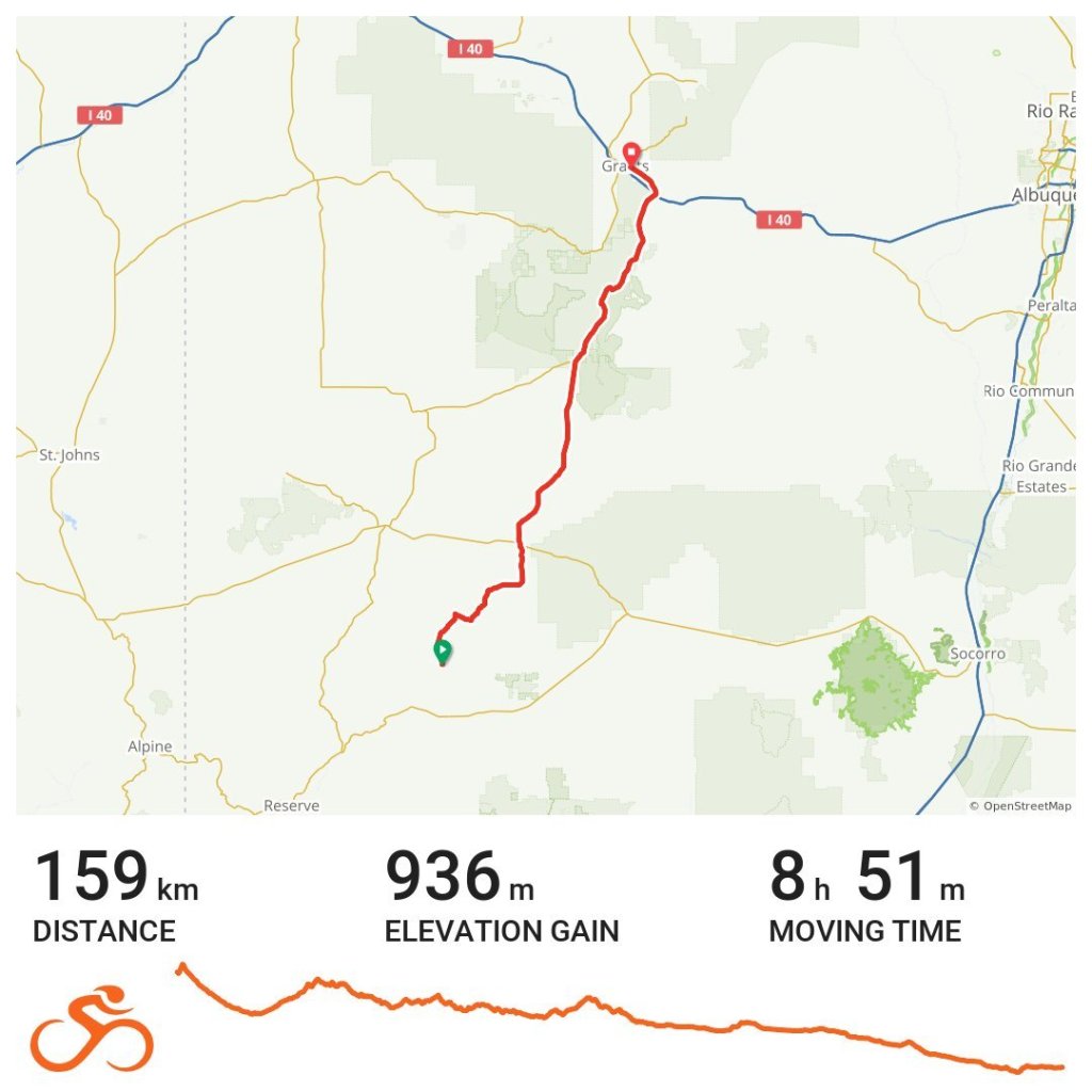 Ride to Pietown took longer than expected but the Toaster House was there for a wonderful mid-day lunch and siesta. The afternoon and evening ride through El Malpais was stunning, finally finishing the day in Grants on Route 66.