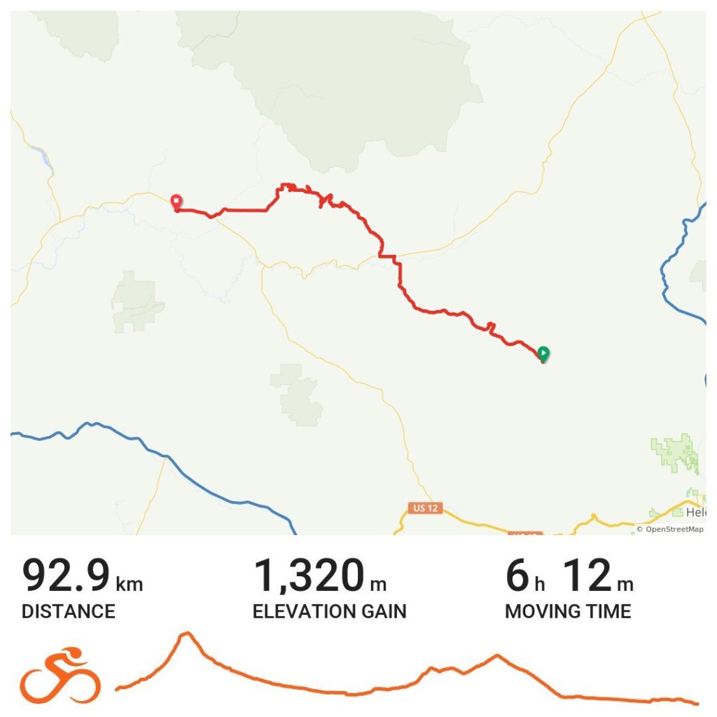 Beautiful climbs with signs of wildlife everywhere. Rocky rough sections often transitioned into smooth, just moist enough, dirt roads. Slow ascents were followed by long fast descents. A day of ‘flow’ punctuated by signs and smells of grizzlies to keep me grounded.