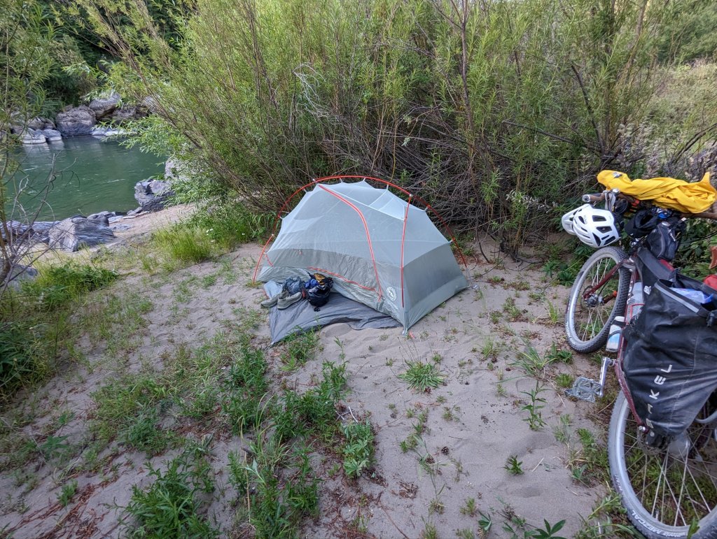 Villa Ortega had some nice cement roads that end in all directions. The ride to Coyhaique was beautiful in spite of a dusty last hour in what seemed like a rush hour of traffic after having virtually none. I ended my day at a campsite by the riverside with a swim.