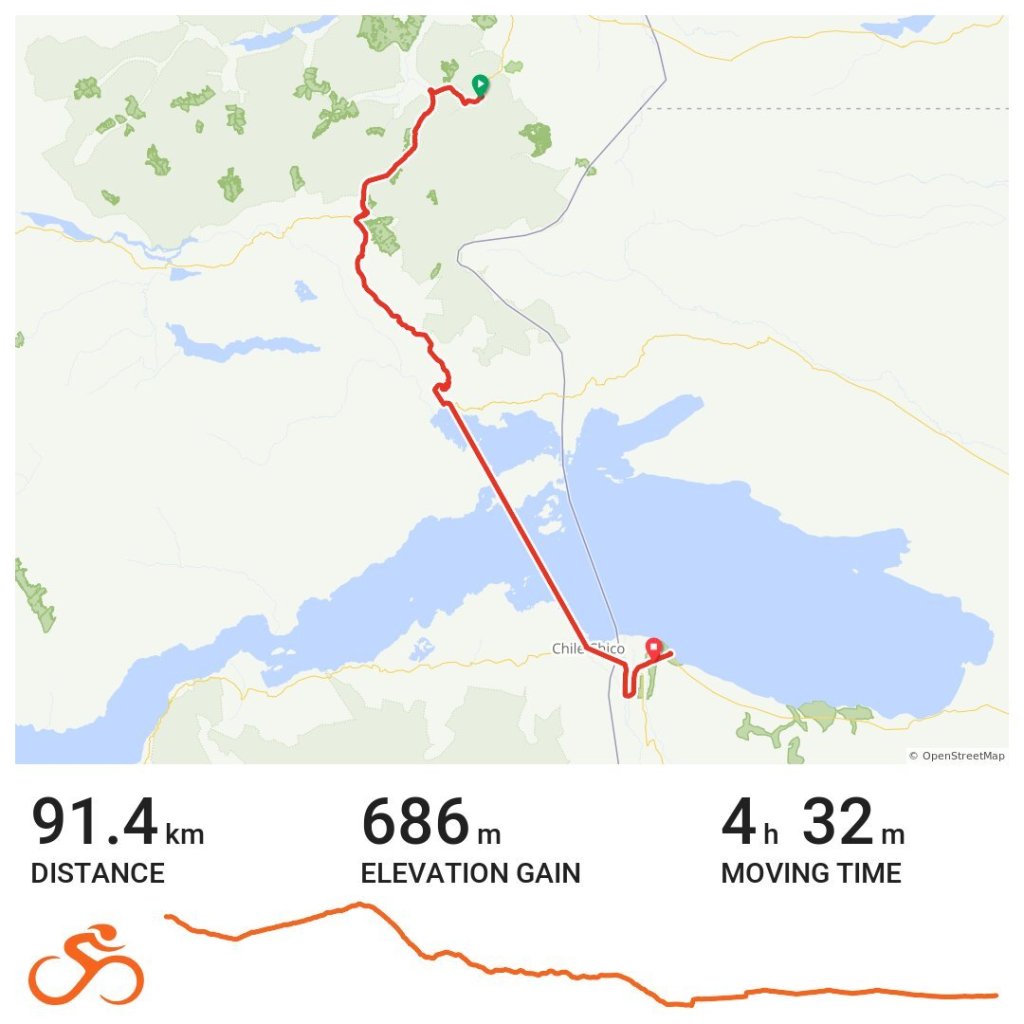 Morning ride with some uphill but mostly stunning descents. Decided to turn left and head for Chico Chile for a noon ferry and planning for crossing back onto Chile via Paso Robales.