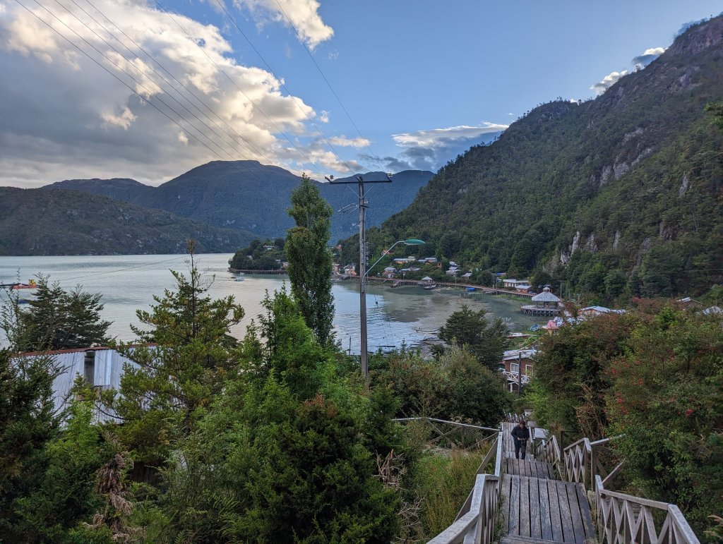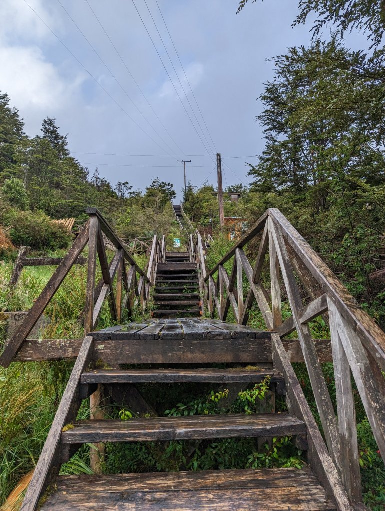 Changed course today due to cancellation of O’Higgin’s Ferry(to Argentina Border Crossing) on Wednesday. Taking in Tortel is a bonus. Seaside town on an inlet with no cars, just pedestrian wooden stilted walkways.