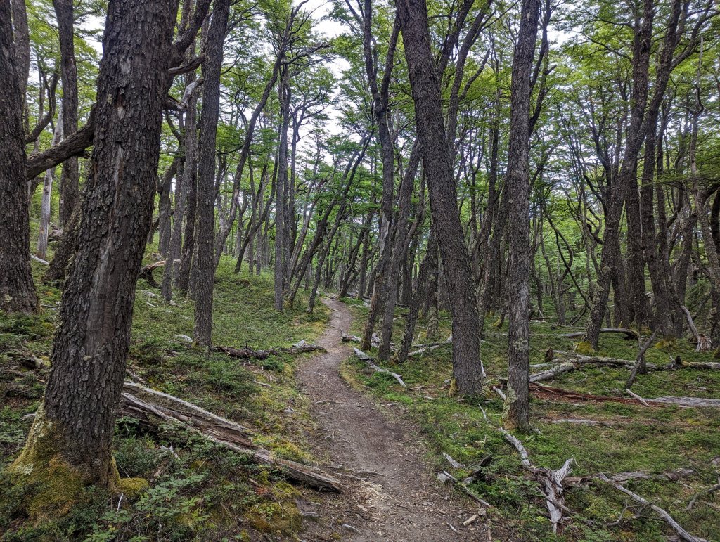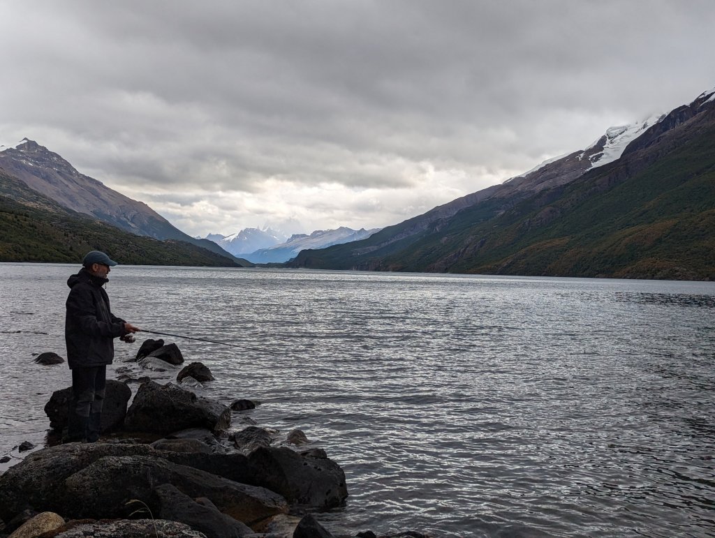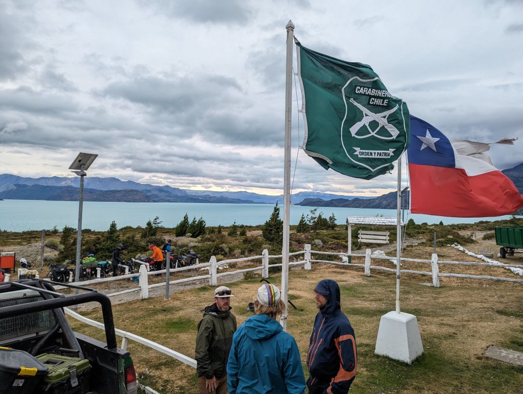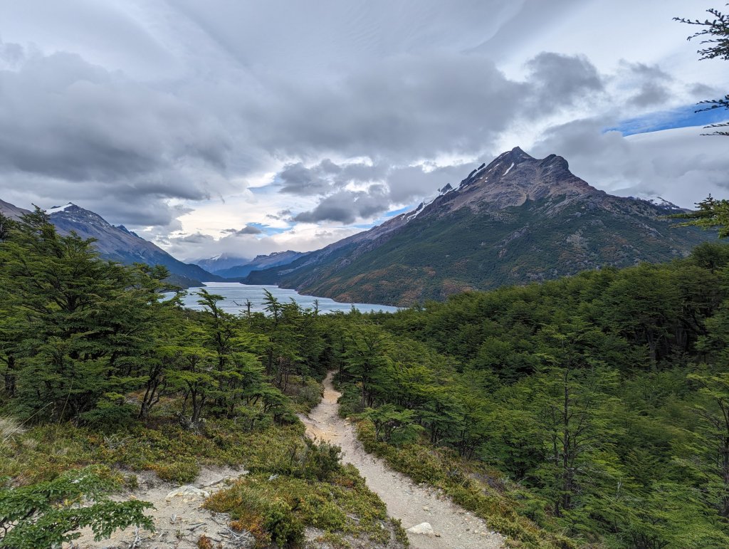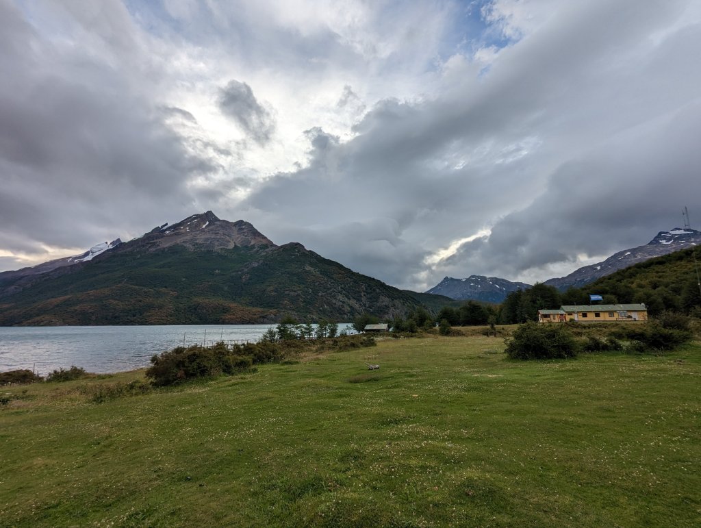 After a 3:45 wake-up, packed and rode the 7 km to the dock. Windy trip along the lake that forms the border between Chile and Argentina. Melting glaciers on both sides created numerous waterfalls that cascade down the steep walls. A steep bike ride to the Chilean border office followed by a 20 km bike(with some hike) to Lago des Desierto and the Argentinian border office. Boat to transport bikes further due at 11 am the next day. Camping at this location was spectacular with views of Fitz Roy that would dominate the landscape focus for the next 3 days.