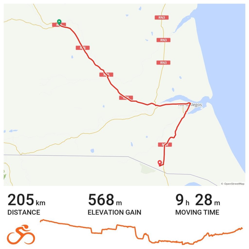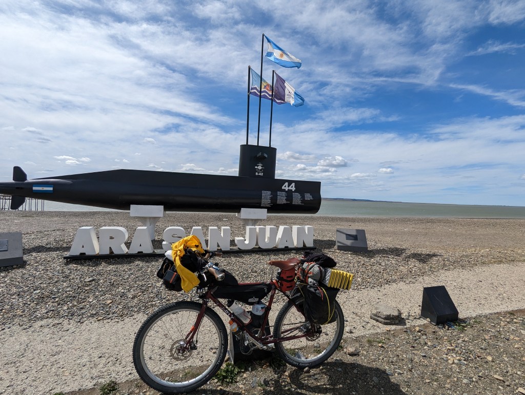 Rolled into Rio Gallegos after a relatively quick descent from Esparanza. Definitely not a tourist town. Military presence, past and present, is pronounced with many monuments to battles, commanders, and lives lost. Continued on to Lago Azur for the night.