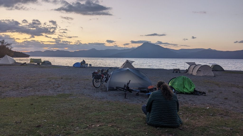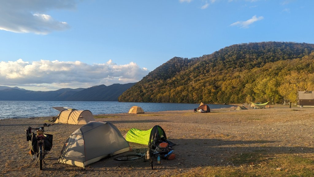 An incredible start to our cycling trip from Hokkaido to Kyushu. After a visit to the hot spring in the airport, we assembled our bikes and were on our way along a rail trail to Lake Shikotsu. Autumn is on the same timeline here as it is at home. The trail feels at times like peddling alongside the Humber if Grizzlys roamed the banks. Bear warnings keep us alert. Foxes and deer run across our path. Houses are smaller as are the cars. We had a good day of acclimatizing to time and riding on the left. Tomorrow we head to Sapporo.