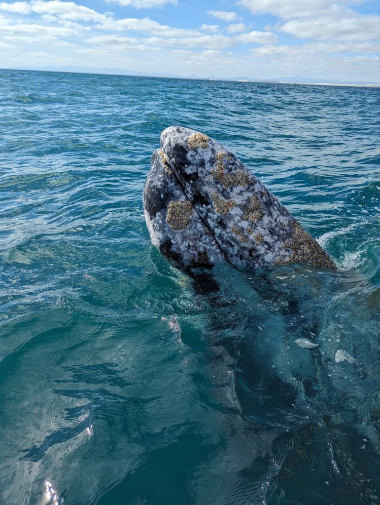 After two long riding days it was time for a break. Benjamin joined for a morning whale tour into the bay at Guerrero Negro. The history of this town includes indentured workers(slaves) from China, colonial and American whalers, the Mitsibushi cooperation who owns 49% of the nationalized(51%) Salt Company and most recently a UN Heritage Site designation. I have more questions about all of this at this point than answers. Regardless, I did take part in a whale tour. The boat took us out past the salt company to a place where the whales were hanging out. As we neared they would approach in 3s and 4s, scratching their backs on the hull. The whole thing was kind of bizarre but incredible. Still a bit shocked about it all.