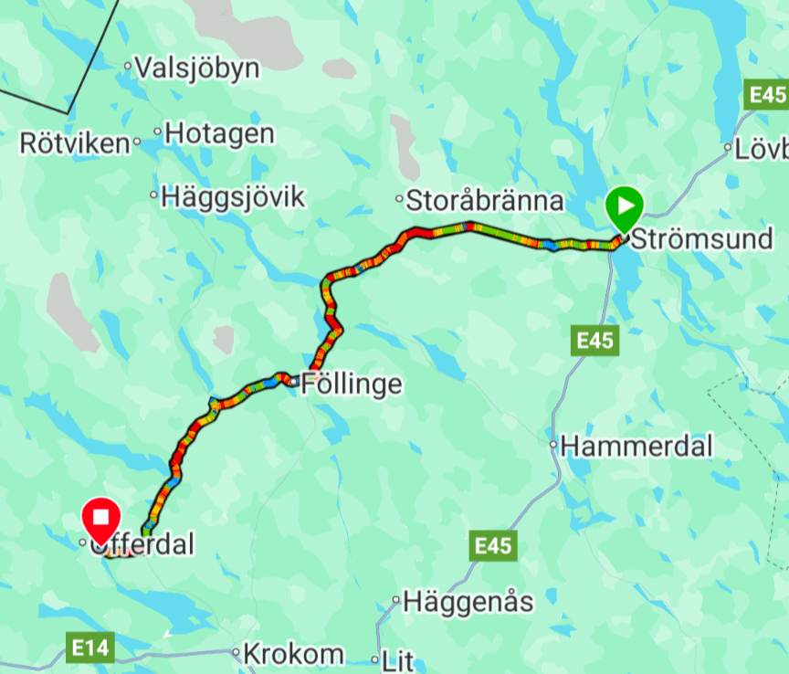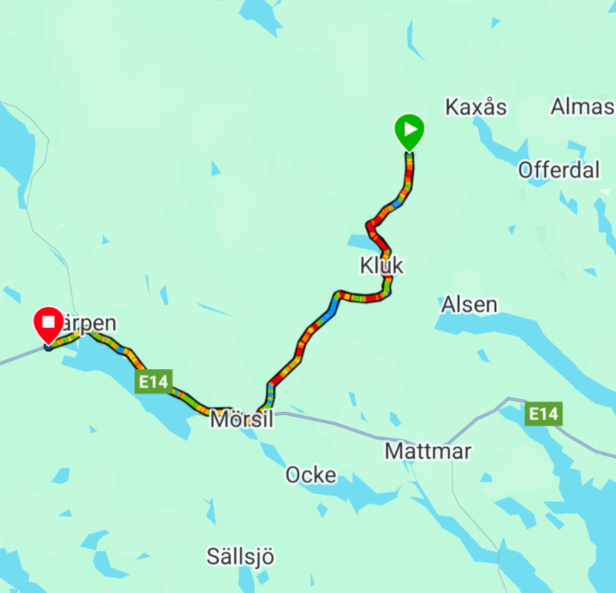 A two part ride to reach Järpen. The hill and weather gods challenged right to the end. Wet and cold, Gittan’s fire was so much appreciated!