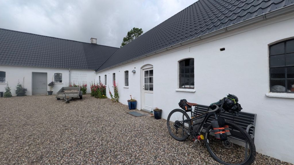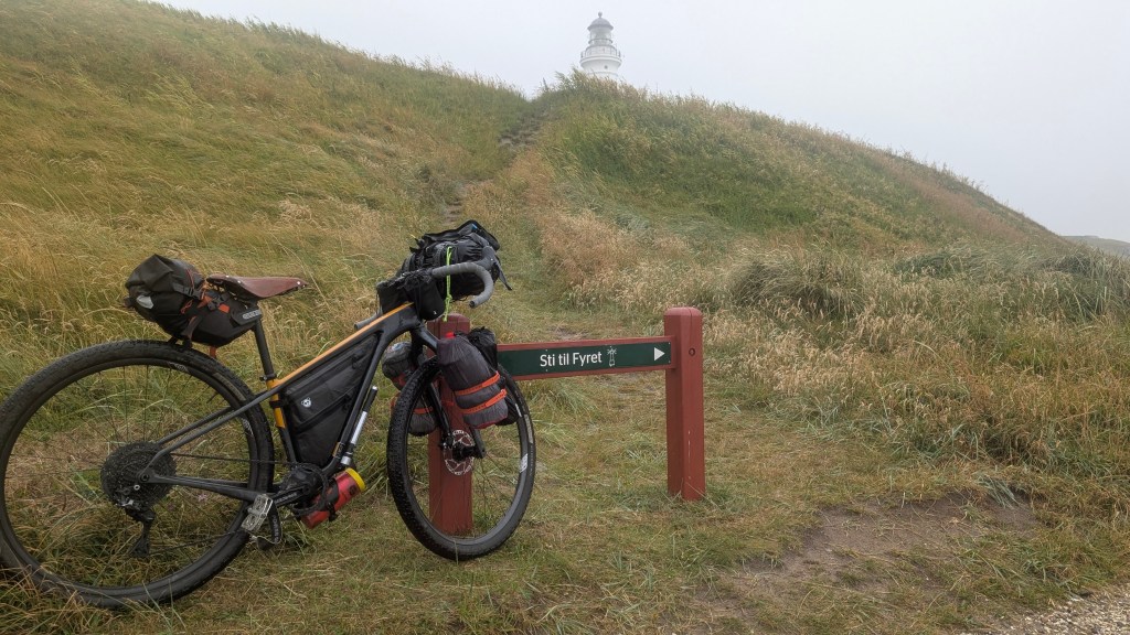 A wet misty day from the Hirtshals dock to a farm stay that I booked later in the day after being thoroughly drenched. Farms, pretty towns, and small forest stands kept the day interesting. Good to be warm and dry in the caravan.